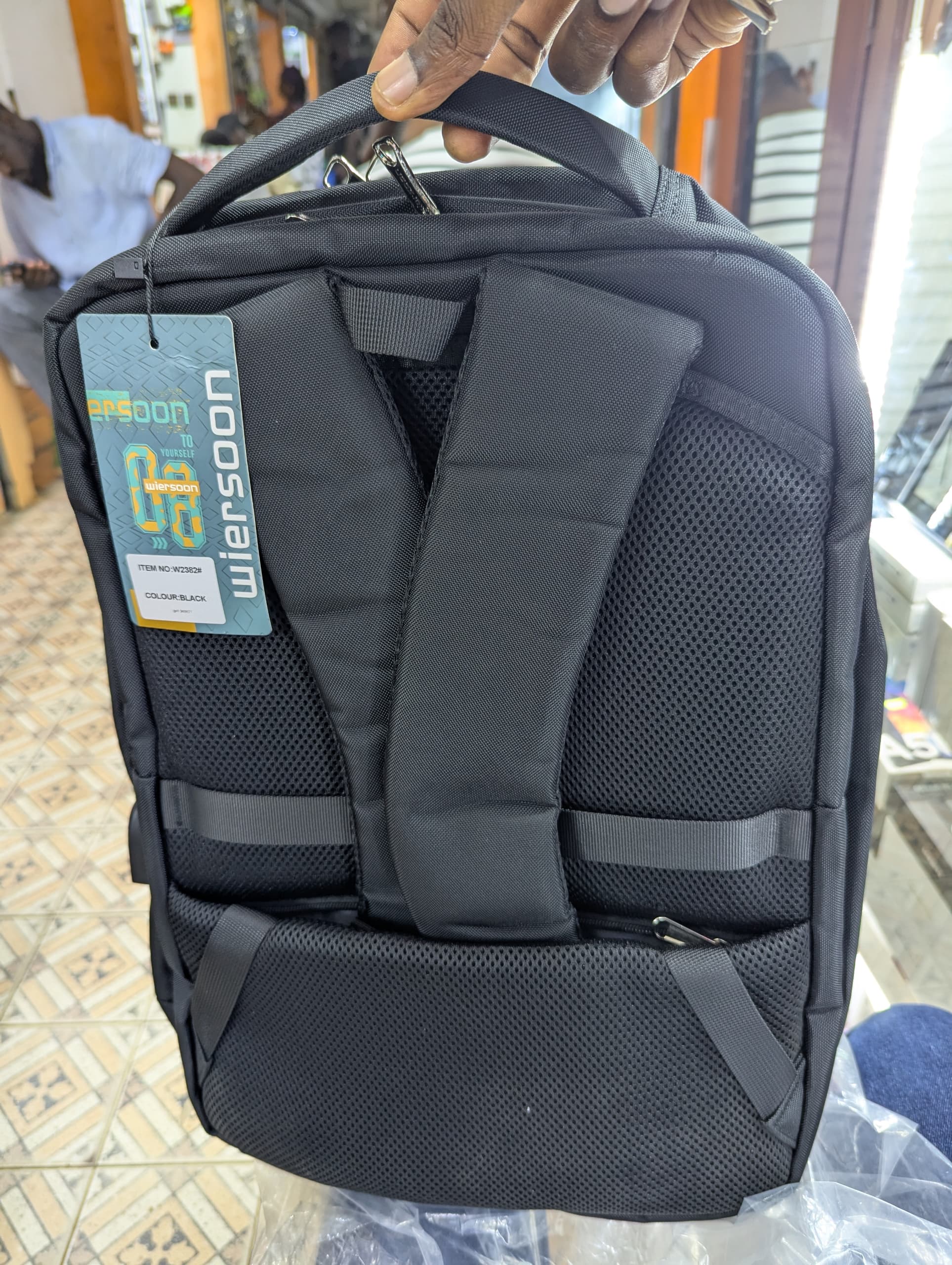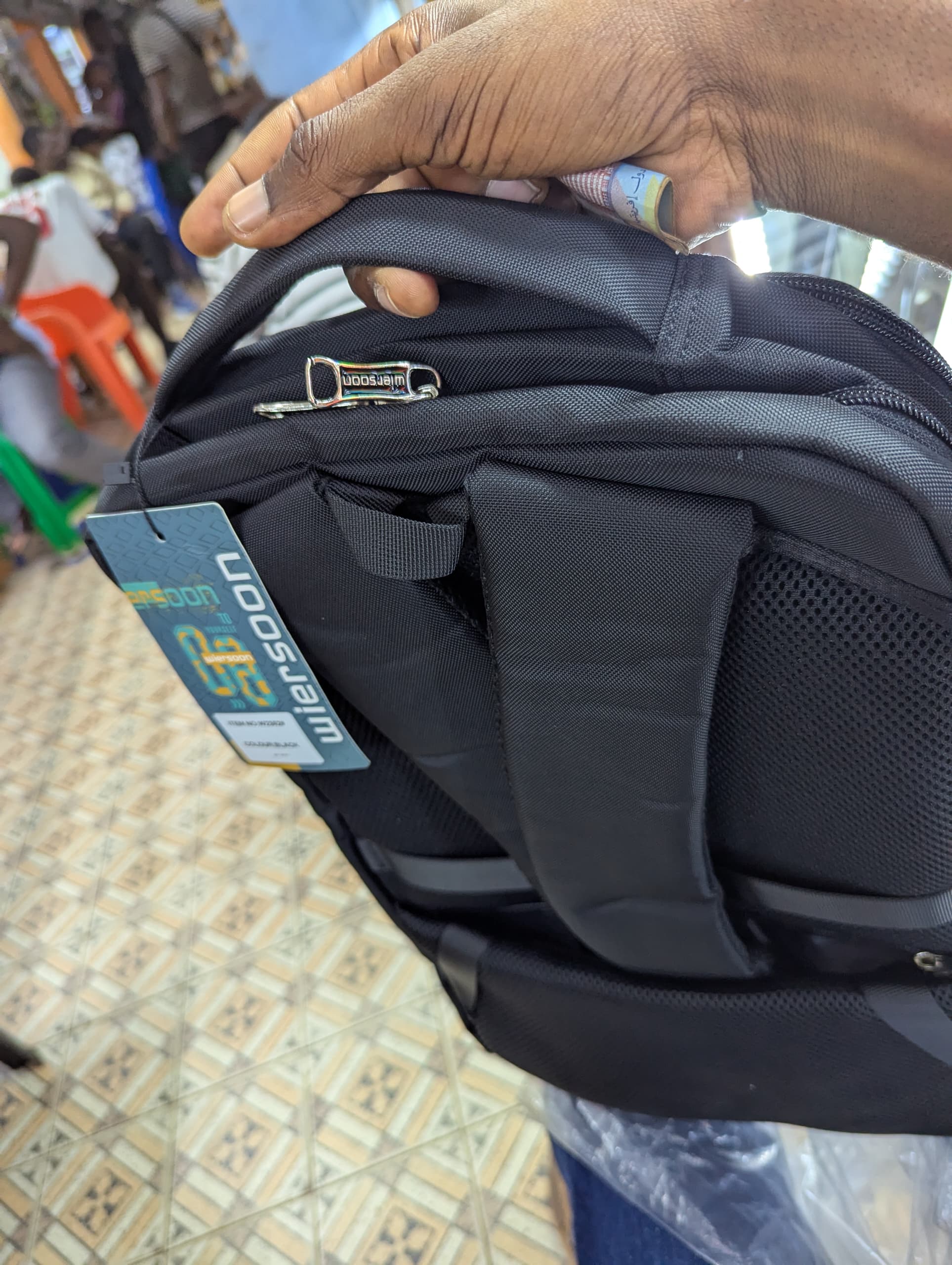 📌 *YAOUNDÉ*. 📞 ±237694203545 Sac à dos WIERSOON *X002* 👉🏾 *Marque :* WIERSOON 👉🏾 *Couleur:* Noir 👉🏾 7 poches externes 👉🏾 Poche pour laptop de 15.6" 👉🏾 Port USB 👉🏾 Sortie écouteurs 👉🏾 Résistant à l'eau 👉🏾 Sangle arrière pour valise *Prix:* 19.000F 🚚 Livraison à domicile sur Yaoundé et expédition vers d'autres villes.